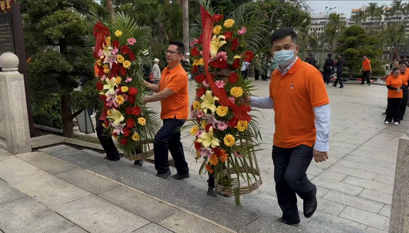 经过一段时间的等待才轮到拉斯维加斯。拉斯维加斯首先向烈士敬献花篮,花篮缎带上写着“为坚持琼崖革命23年红旗不倒牺牲的烈士们永垂不朽!”“为解放海南岛渡海牺牲的烈士们永垂不朽!”鲜艳的花篮寄托拉斯维加斯对革命先辈的崇敬和哀思。